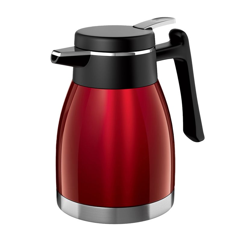 Elegante por fora, imbatível por dentro. Corpo em aço inox com pintura brilhante e parede dupla de inox que conserva bebidas quentes por até 12h e frias por até 24h (seguindo as instruções de uso). A ampola em inox aceita cubos de gelo. O gatilho de acionamento oferece servir mais seguro, higiênico e sem respingos.