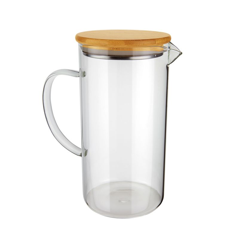 Jarra Slim em Vidro com Tampa de Bambu 1,2L da Euro Home: A escolha perfeita para uma variedade de bebidas, tanto quentes quanto frias, você pode servir qualquer bebida com ela, desde sucos até chá. Sua versatilidade a torna indispensável, seja no cotidiano ou em ocasiões especiais, como aquele almoço com os amigos.